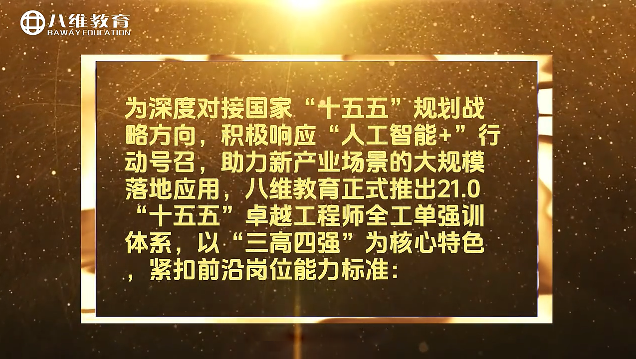 数字时代,技术迭代日新月异,职业竞争日趋激烈。八维教育 21.0 卓越工程师全工单强训体系,以国家战略为导向,以产业需求为核心,以实战能力为根本,打破传统教育与职场需求的壁垒,为学子搭建从校园到职场的 “直通桥梁”。