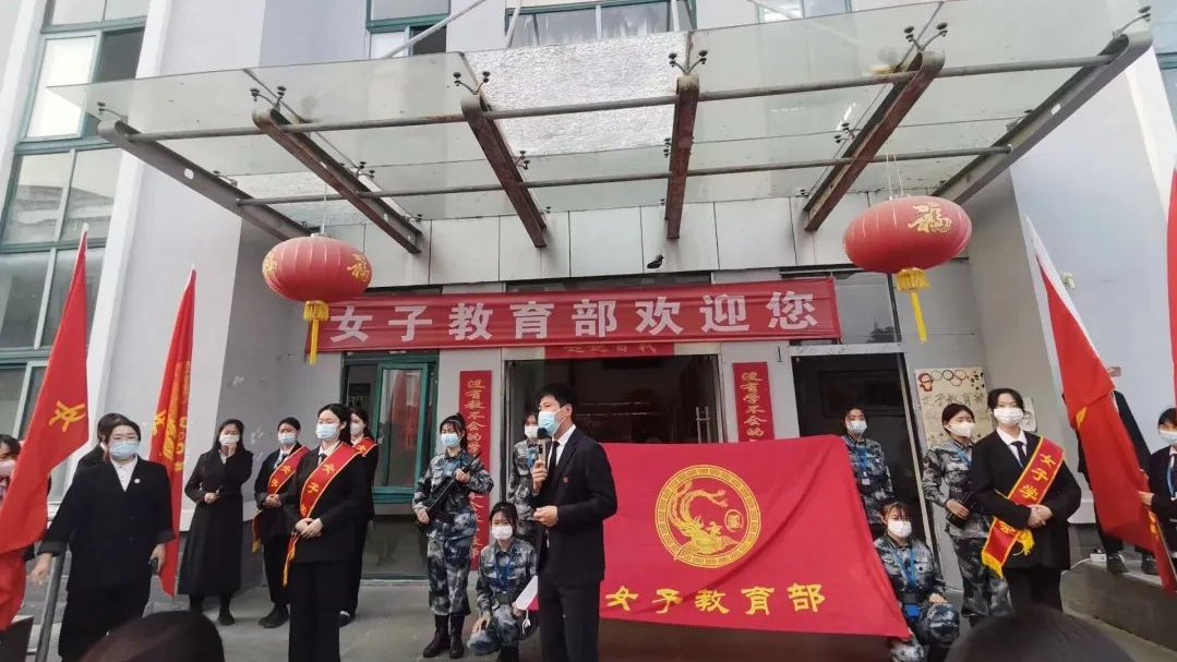 5月12日清晨,女子教育部的学生们在教学楼前集结,她们像是出征的“战士”,精神百倍,整装待发,即将征战考场。