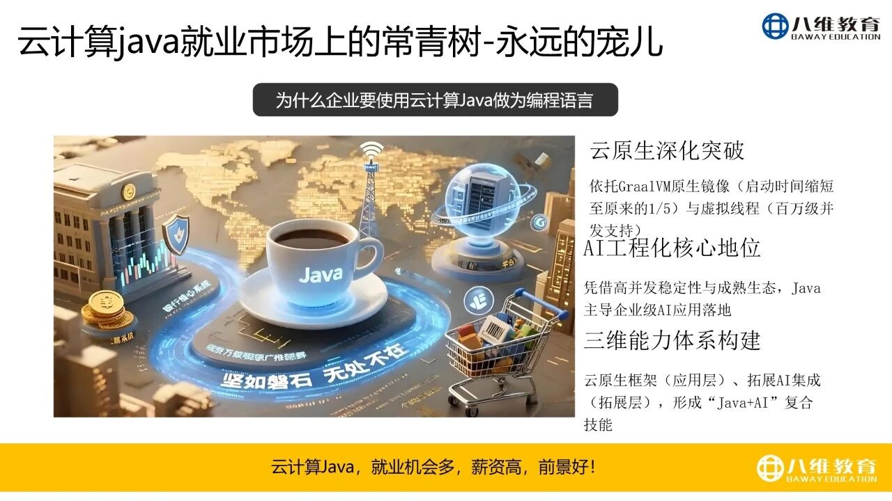 风口不等人,技能改变命运!加入八维云计算专业,与企业大咖并肩学习,在真实项目中锤炼本领,让高薪就业不再是梦想,让职业发展拥有无限可能!