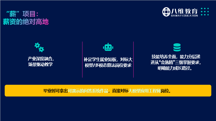 在职业教育领域深耕 30 年的八维教育,始终秉持 “以市场需求为导向,以岗位要求为标准,以优质就业为目标” 的理念,早早洞察到 AI 技能的时代价值,成为首批 “AI 融合型特色专业点” 入选单位。依托近 30 年职教积淀,八维教育紧跟国家政策与产业趋势,打造出21.0 “十五五” 卓越工程师全工单强训体系,以顶尖 AI 课程、实战化教学、全链路赋能,助力万千学子抓住 AI 技能红利,实现高质量就业。
