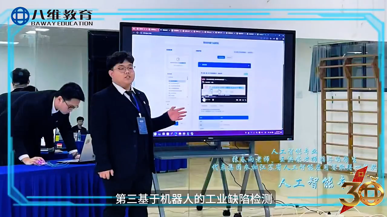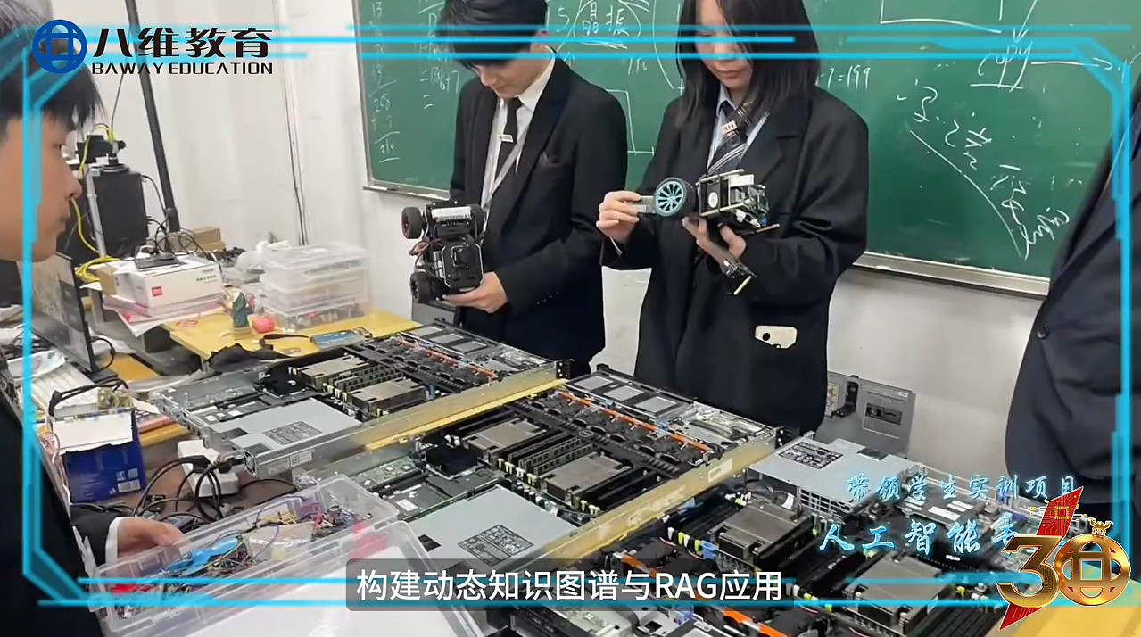 在八维,实践课程占比超50%,学生从入学第一天起,就置身于真实的产业场景中。"校中厂、厂中校"的创新模式,让课堂与车间无缝衔接,学生70%的课程直接对接企业生产流程。在这里,你不再是被动接受知识的听众,而是主动解决问题的实践者。比如在人工智能专业,学生参与企业真实的AI模型训练项目;在数字经济专业,亲手操盘大数据分析与营销方案制定;在先进制造专业,直接上手操作工业机器人与智能生产线。这种沉浸式的实践教学,让学生在毕业时就拥有至少等同于1-2年工作经验的实操能力,真正实现"毕业即上岗,上岗即上手"。