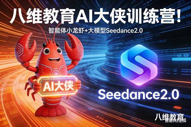 八维教育将 9 大类 55 种 AI 工具全面融入教学与实训全过程,包括 AI 对话大模型、AI 编程工具、多模态生成框架、智能体开发平台等,让学员熟练掌握行业前沿工具,提升工作效率与创新能力。同时,开设 AI 智能体训练营、大模型应用实战营等特色课程,零基础学员可快速入门,掌握 OpenClaw 系统实操、Seedance2.0 大模型开发等核心技能,抢占 AI 智能体这一新兴风口。