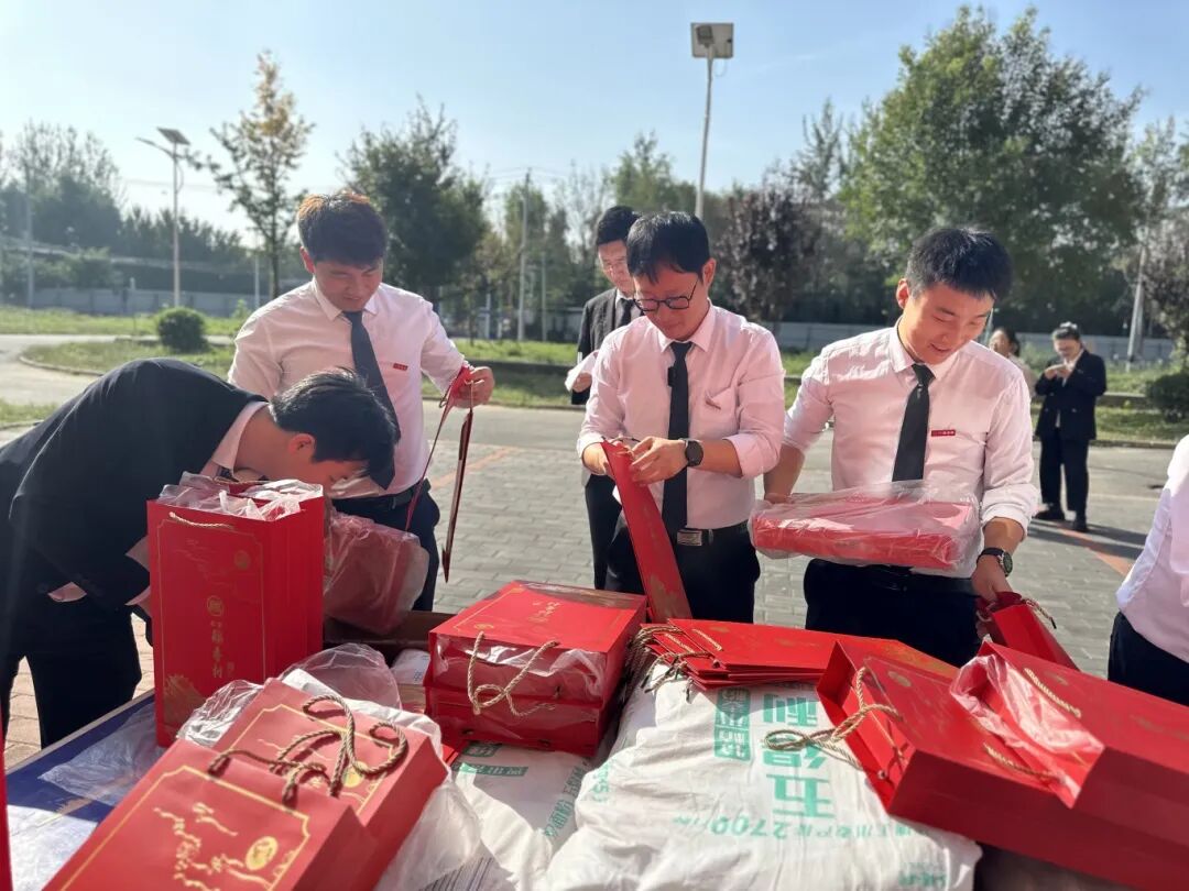 一大早,热闹喜庆的氛围扑面而来,老师们把一袋袋大米、白面、食用油以及象征着团圆的月饼精心码放,“小山”般的福利整整齐齐堆放一起。集团领导贴心落实每处细节,这份满溢的关怀,让大家身心温暖,更添工作干劲!