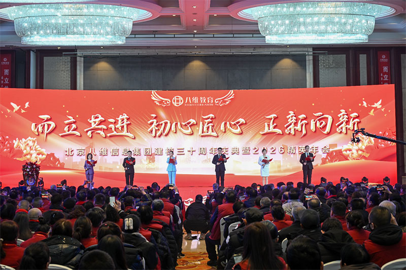2026年1月24日,北京八维信息集团建校三十周年庆典暨2026精英年会在气势恢宏的开场舞中拉开序幕。舞姿铿锵,鼓声雷动,既展现了八维三十载砥砺前行的奋进姿态,亦昭示着未来蓬勃发展的强劲势头!