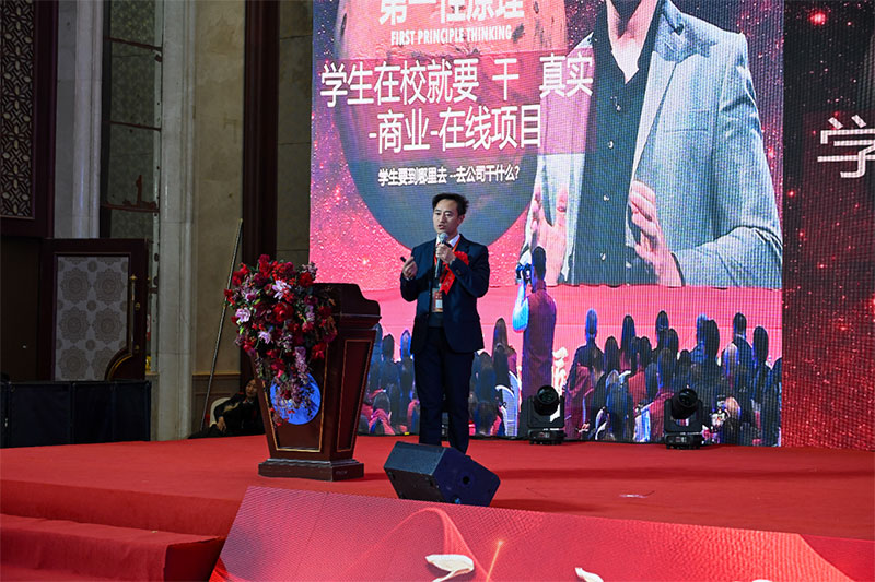 王总首先以近期集团与联想集团达成战略合作、实训平台在北京市数据要素大赛中力压多所传统高校获奖、学生在省级人工智能与职业规划大赛中屡获佳绩等喜讯开篇,彰显了八维强劲的发展势头和八维人对初心的坚守。