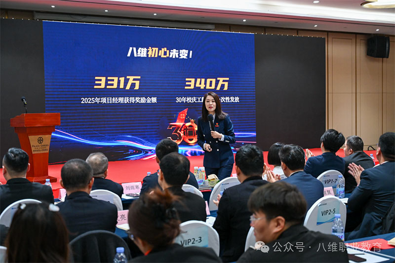 王总分享成长经历,强调了八维30年专注职业教育的坚守与如磐的初心。