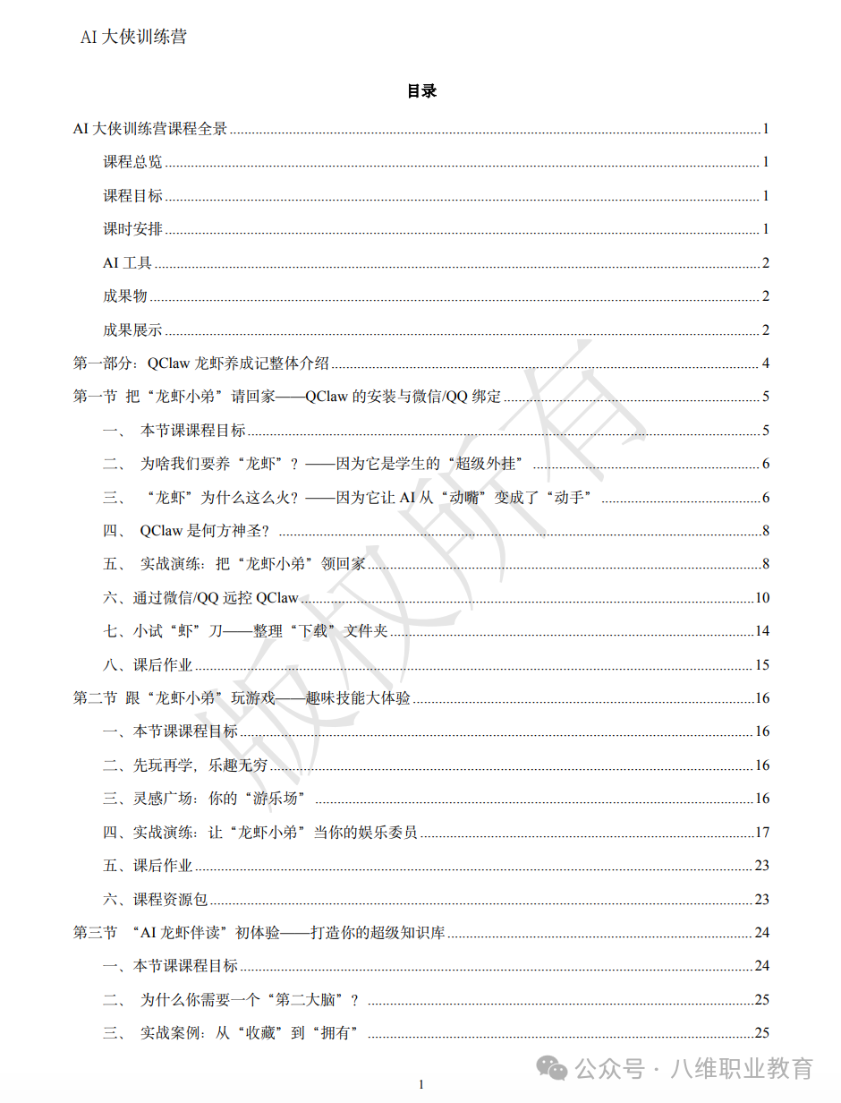 仅16节课,你将掌握QClaw,并手搓一个专属的“AI龙虾伴读”;