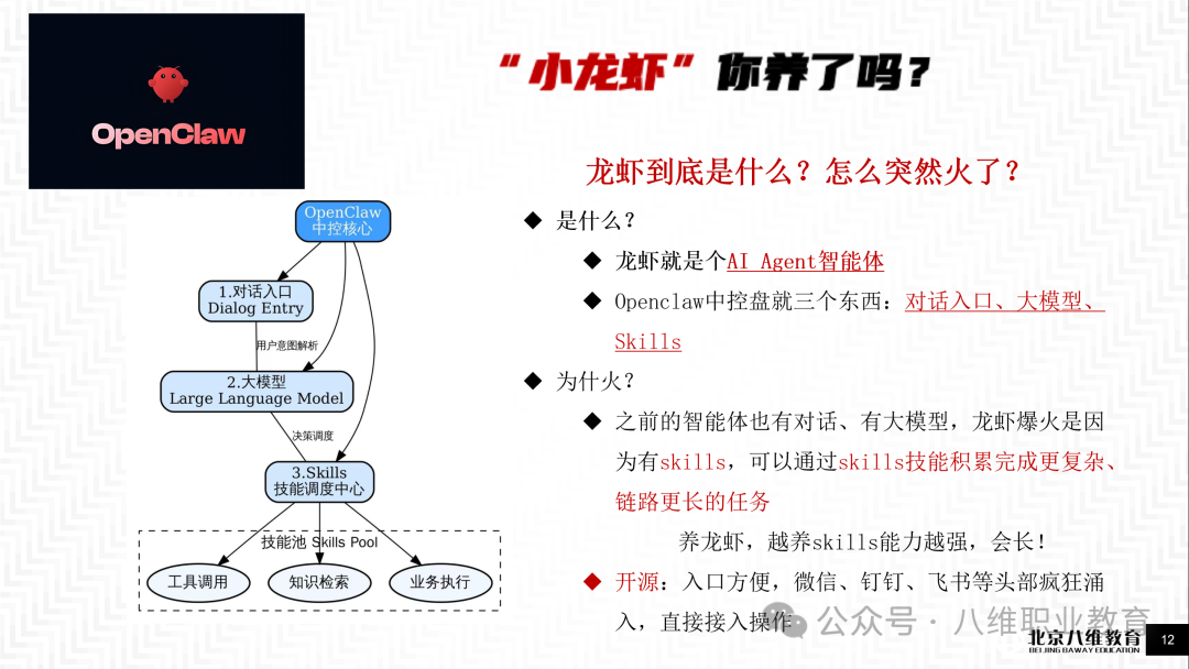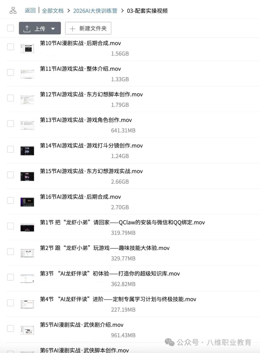 想“养虾”、想手搓AI视频,八维教育2026全新“AI大侠训练营”,用16节“线下集训+线上辅导”的课程带你实现从0到1的硬核突破!我们将高端的技能拆解成多个细分模块,让你快人一步学会“养虾”!
