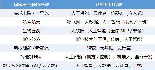 职业教育的生命力,在于与产业发展同频共振中华人民共和国教育部。八维教育敏锐捕捉国家 “十五五” 规划产业布局,摒弃滞后于市场的传统专业,聚焦国家重点扶持的六大支柱产业与数字经济核心领域,构建起人工智能、大数据、云计算、物联网工程、低空技术与工程、鸿蒙开发、网络安全等前沿专业矩阵,实现 “国家重点投向哪里,八维专业就布局哪里”。